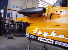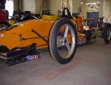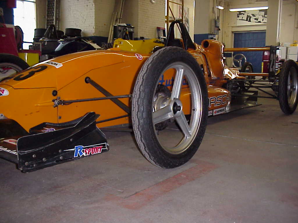 Transport / Paddock Wheels - Aluminum 18" wheels give your car 4"-5" ground clearance for easy loading onto the trailer. No more damaged wings and diffuser. They also make it easy to push around. They use the stock wheel nut and clear the front wings at full turn. You will wonder how you got along without them! You won't be disappointed! Uses 100x90x18" or 110x90x18" motorcycle tire (not included) . Call or email (paul@rsport.us) for more information and pricing. |