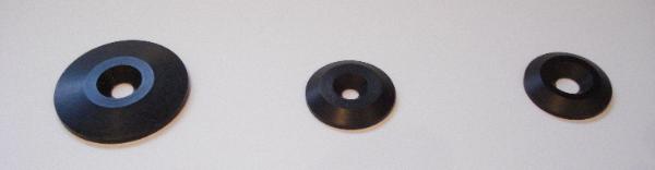 Aluminum Wing plate washers are available in 1.0" diameter and 1.5" diameter. They have a tapered profile and are Black MIL SPEC Hard Coat Anodized. Bolt heads mount flush with the washer face.