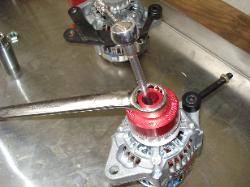 pulley on, you will need a special tool. The alternator pulley is threaded and needs to be