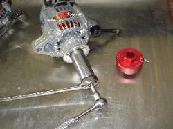 with an extension to hold or turn the alternator shaft. Of course you have to put the extension